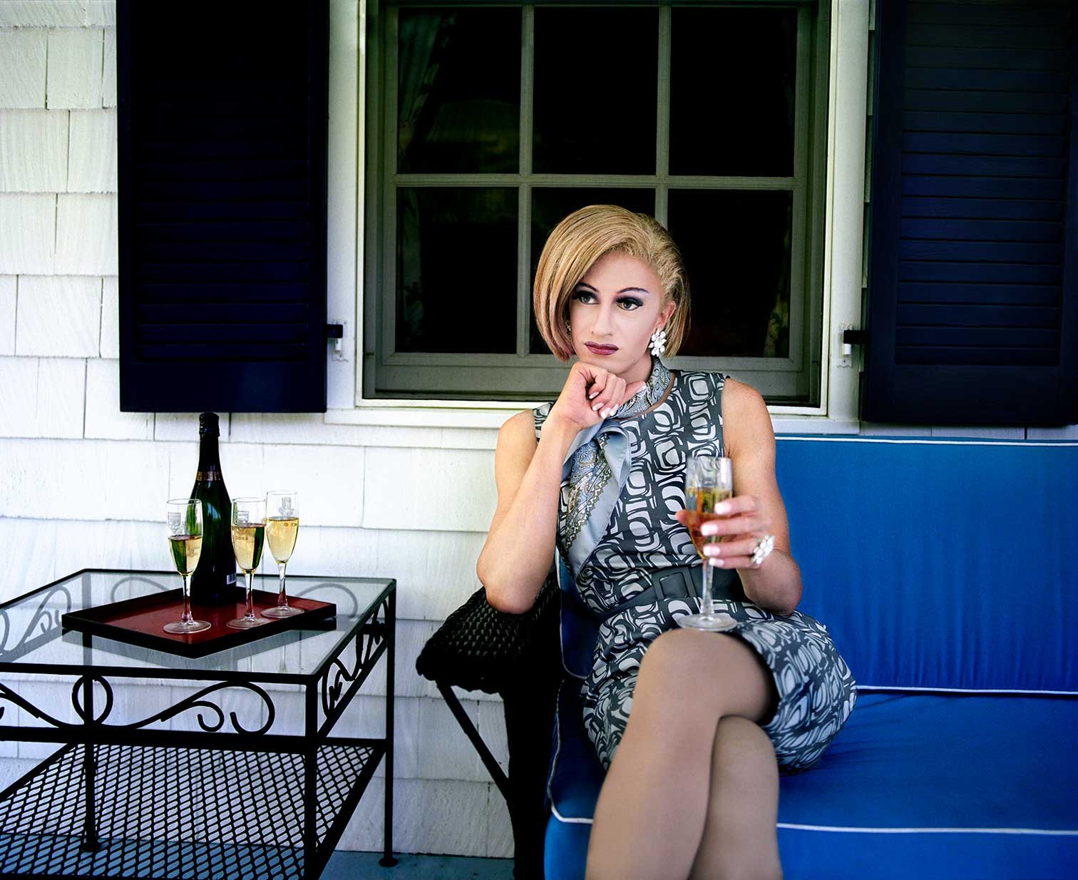 Truly Fabu and Andorra Tette were photographed in the upper class homes in which they were raised. Adopting the costumes and poses of the upper class, each subject appropriates the cultural stereotypes of the world in which they grew-up. At first glance the images look like the photographs traditionally shown in Town and Country Magazine; however, as one looks more closely, the flipping of both gender and of conventional notions of reality, become more apparent. This serves to highlight the artifice that is present not only in the performance of the drag queens themselves, but also in the imitation of the upper-class social stereotype.